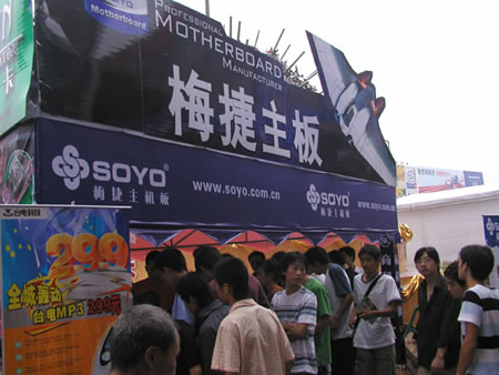 做為當(dāng)天唯一一家板卡展示的廠商,我們的這次活動取得了非常好的產(chǎn)品形象宣傳效果,我公司的展示區(qū)人頭觸動,前來進行了解及購買的人絡(luò)繹不絕。我們的活動人員在這兩天里接待了大批前來進行主板和顯卡了解的消費者,并對其進行了詳細(xì)的產(chǎn)品介紹及購買指導(dǎo),得到了消費者普遍好評。