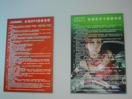 (圖7)各產(chǎn)品的保修條例貼在墻上,讓客戶更好的了解