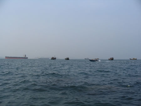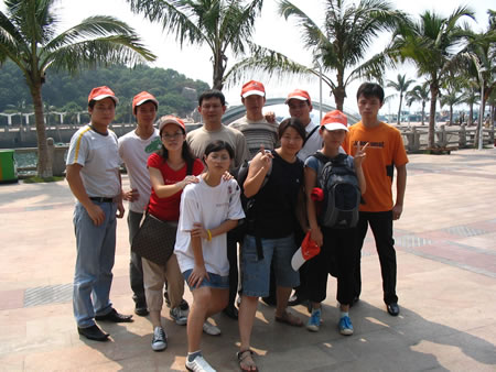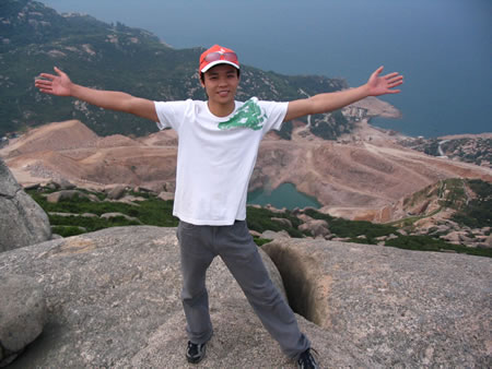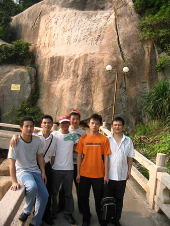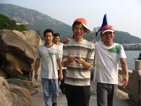 歡呼聲中我們踏上了十一之旅,來到富有豐富人文、歷史景觀的外伶仃島,外伶仃島離香港長洲島只有6海里,主峰伶仃峰高達(dá)311.8米,是萬山群島最高峰。站在伶仃峰可清楚的觀望香港的景色(如太平山、青馬大橋等香江景物)。天氣晴朗不起霧的時侯,清晨在山頂?shù)群蛱枏拇蠛5牡仄骄上跳出,冉冉升起,整個洋面一片金黃,霞光萬丈,美不勝收,真是一大奇景可惜我們這次沒有看到此景!!!!伶仃洋上最有影響,千古傳誦的是文天祥“人生自古誰無死、留取丹心照汗青”這一千古絕唱。這是毛澤東主席生前手書的文天祥《過伶仃洋》詩的石刻。