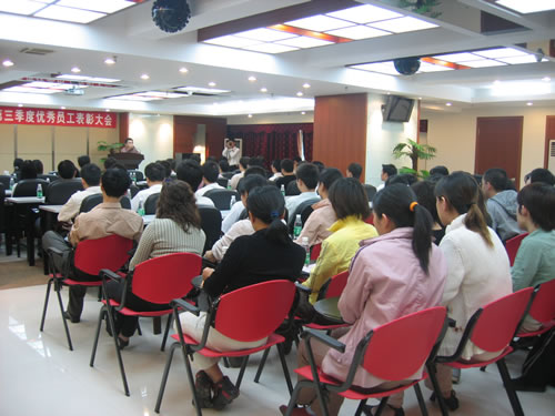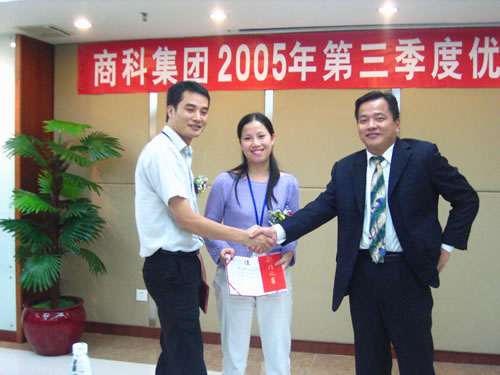 在這樣一個金秋收獲的季節(jié)里,商科集團第三季度的優(yōu)秀員工表彰大會于2005年11月1日在廣州天河北光大銀行大廈的會議中心隆重舉行。商科總部的全體工作人員和廣州分公司所有員工無不到場。