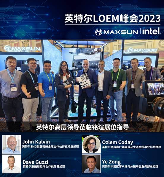 在銘瑄展位上,銘瑄以其展示的獨特創(chuàng)新產(chǎn)品吸引了眾多來賓的目光。其中由英特爾SMG副總裁兼全球合作伙伴支持總經(jīng)理 John Kalvin、英特爾系統(tǒng)和組件合作伙伴總經(jīng)理 Dave Guzzi、英特爾全球客戶端渠道及生態(tài)系統(tǒng)事業(yè)部總經(jīng)理 Ozlem Coday、英特爾中國區(qū)客戶端與分銷平臺業(yè)務(wù)部總經(jīng)理 Ye Zong等核心嘉賓帶領(lǐng)的指導(dǎo)團隊蒞臨銘瑄展位指導(dǎo),并對銘瑄表示了高度認可和贊譽。